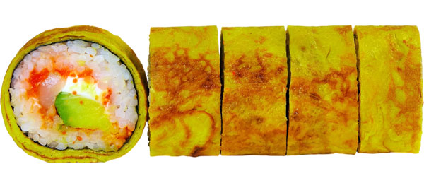 Лосось, угорь, крем-сыр, авокадо, омлет тамаго, темпура. *Не является горячим блюдом